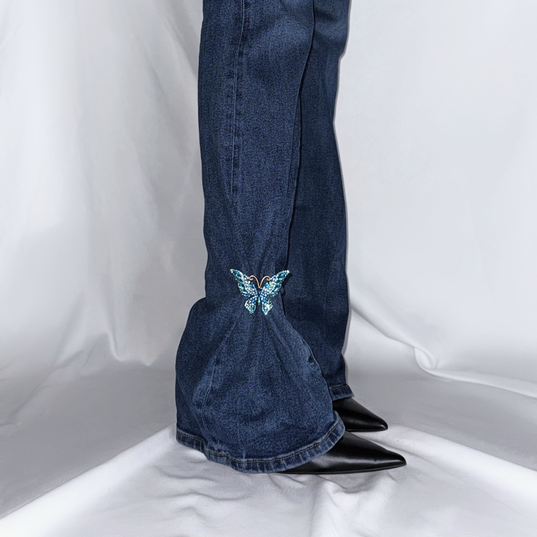 A vibrant butterfly brought to life. With its colourful wings and graceful form, Luna Flâneur adds a playful yet elegant touch to any pair of jeans. A statement of freedom and effortless style.