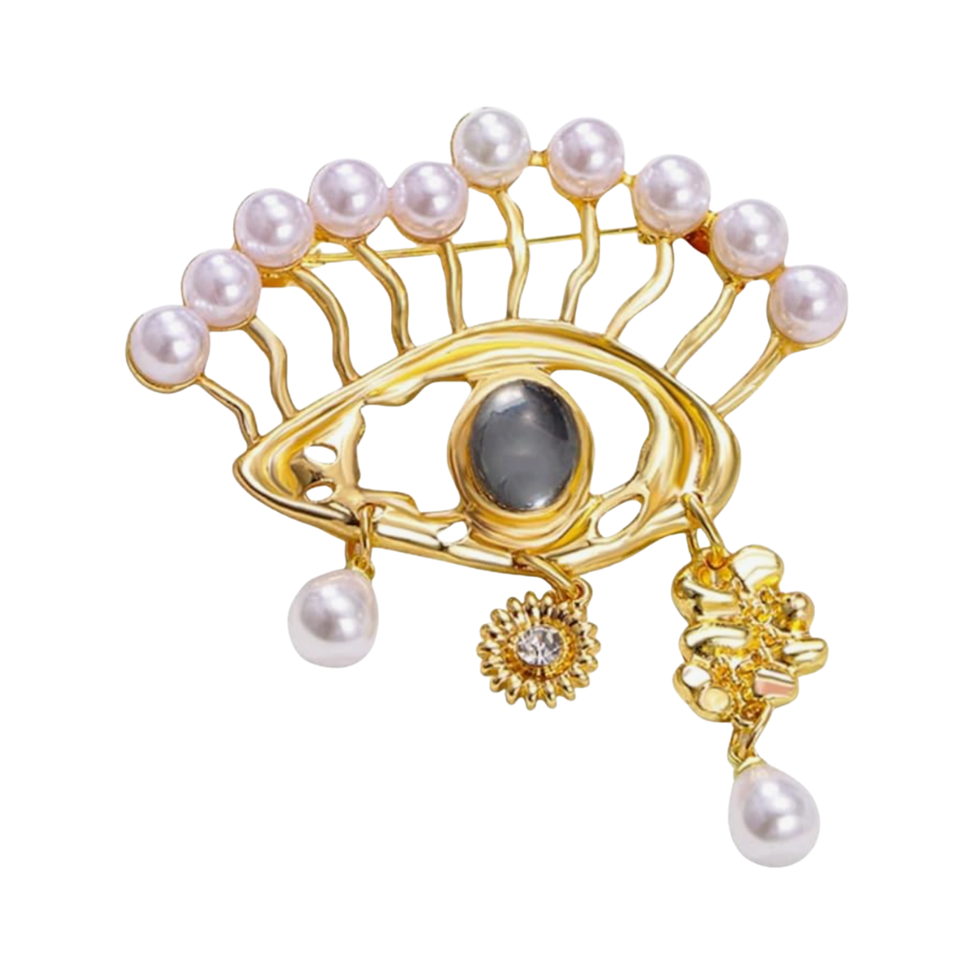 A radiant blend of elegance and symbolism. The Pearl Evil Eye Jeanlet features a golden eye design adorned with soft pearl accents and delicate dangling details. Its refined structure and luminous finish bring a touch of mystique to your jeans, transforming any pair into a statement piece that stands out effortlessly.